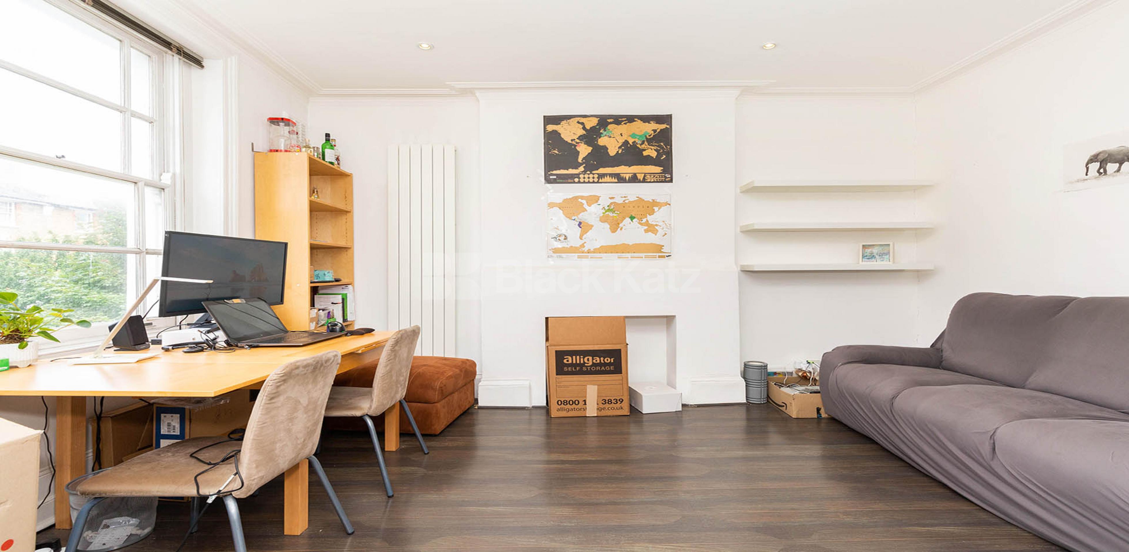 Set on the 1st floor of a period house in Camden this fantastic one bedroom flat has a large open plan kitchen lounge, modern tiled bathroom, good size bedroom with built in wardrobes, mix of carpets and wood floors and loads on natural light. Tenants also have access to a garden.